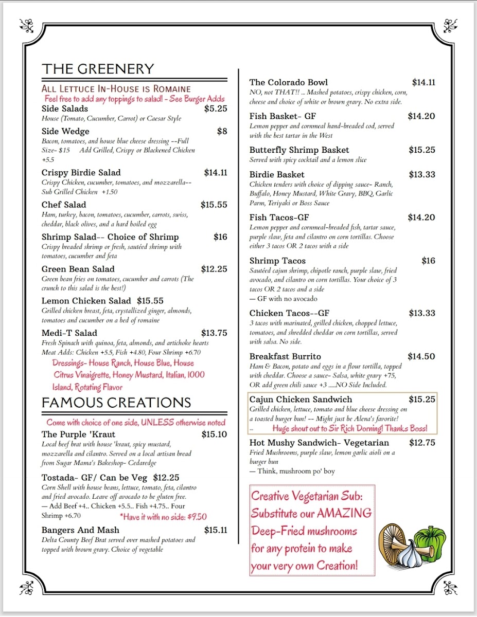 As you step inside, you're greeted by an inviting ambiance, complemented by a lovely outdoor seating area perfect for enjoying your meal al fresco. Under the watchful eye of owner Alena, Creations on Main offers an impressive menu that caters to every palate. From their famous Trough Burger—a must-try as declared by loyal patrons—to lighter fare like the Cajun Chicken Sandwich and the Colorado Bowl, there is no shortage of delicious options.